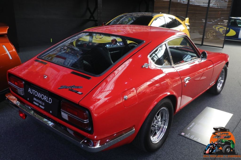 Plus de 55 véhicules japonais ont été rassemblés pour nous. Des modèles qui ont marqué plusieurs générations avec notamment des voitures assez populaires comme la HONDA S800 Cabrio (1967). Arrivé en 1964 à la suite du Salon de Genève avec un moteur 4 cylindres de 531 cc délivrant 44 ch à 8000 tr/min. C’était un petit spider à l’allure sportive suivi rapidement d’une version « Coupé ». En ’65, pour l’Europe la cylindrée passe à 800 cc d’où le nom « S800 ». Bien sûr, il y avait aussi la SUZUKI Fronte avec un 3 cylindres de 500 cc, qui fut la première voiture Suzuki commercialisée en 1969 sur le marché européen. De son côté MAZDA avait en 1965, un concept car LUCE 1500 dessiné par Giorgetto Giugiaro . Il arriva en ’66 sous forme d’une berline 4 portes, propulsion avec moteur avant. Le moteur était un 1490 cc de 78 ch. Un 1800 arriva en 1968. DATSUN n’était pas en reste avec, de 1968 à 1973 la Datsun 510 Bluebird. Sa conception s’inspirait des berlines européennes contemporaines. La Corolla de TOYOTA est arrivée en 1966 et était, en 1974, la voiture la plus vendue au monde. D’abord propulsion, elle fut, ensuite, produite en traction. Ses concurrentes japonaises à l’époque étaient les NISSAN Sunny, HONDA Civic ou Mitsubishi Lancer. Le modèle exposé, ici, est de 1967. HONDA a lancé la première génération de la Civic en 1972 sous forme d’une berline fastback 2 portes suivi d’un modèle 3 portes à Hayon. Moteur transversal et traction avant. Le modèle exposé est une version automatique de 1977. MAZDA a créé la Cosmo équipée d’un moteur Wankel. Présentée en 1964 au Salon de Tokyo et produite à partir de 1967, avec une 2ème série produite de 68 à 72. Fabriquée à la main et 1176 Cosmo ont été construites. Pour montrer la fiabilité de cette Mazda, 2 Cosmo ont participé en 1968 aux 84 heures du « Marathon de la Route » au Nürburgring. L’une, menée par un équipage belge, est arrivée 4ème tandis que l’autre a dû abandonner après 82 h suite à un bris d’essieu. Le modèle exposé est de 1970. Plus connue, la petite MAZDA MX-5 appelée sur certains marchés, MIATA, est arrivée en 1988. Ce petit cabriolet 2 places était inspiré de la Lotus Elan. Elle connaît toujours un grand succès avec, à ce jour, plus d’un million de voitures produites. On peut encore citer la petite SUZUKI Cappuchino qui fut produite de 1991 à 1998 et qui répondait aux réglementations japonaises des « kei cars », ces petites voitures qui profitaient de taxes et d’assurances réduites au Japon. Entre 1993 et 1995, un total de 1110 voitures furent vendues au Royaume-Uni et 390 à travers l’Europe, dont la Belgique. Bien sûr, il y a aussi des voitures prestigieuses comme le TOYOTA Century de 1997, qui est, en fait, la Rolls-Royce du Japon. Elle a un moteur V12. Peinte en un rare bleu foncé appelé « GOSHIKIGAI BLUE MICA », elle a une subtile brillance nacrée. L’habitacle était habillé de laine avec rideaux en dentelle. Son public cible était de hauts fonctionnaires, des magnats de l’industrie et les membres de la famille impériale.